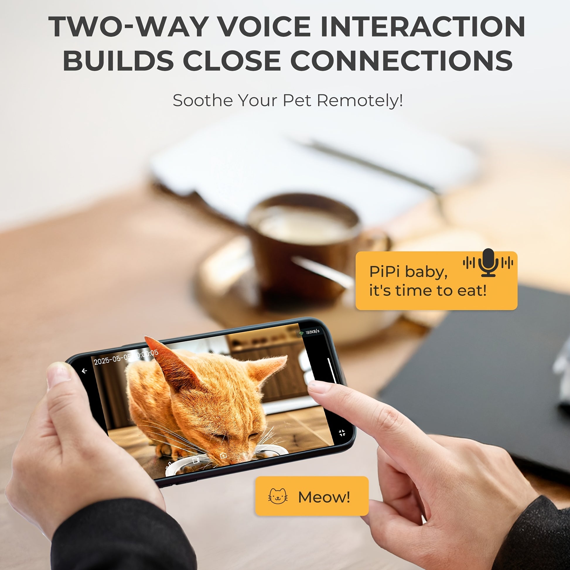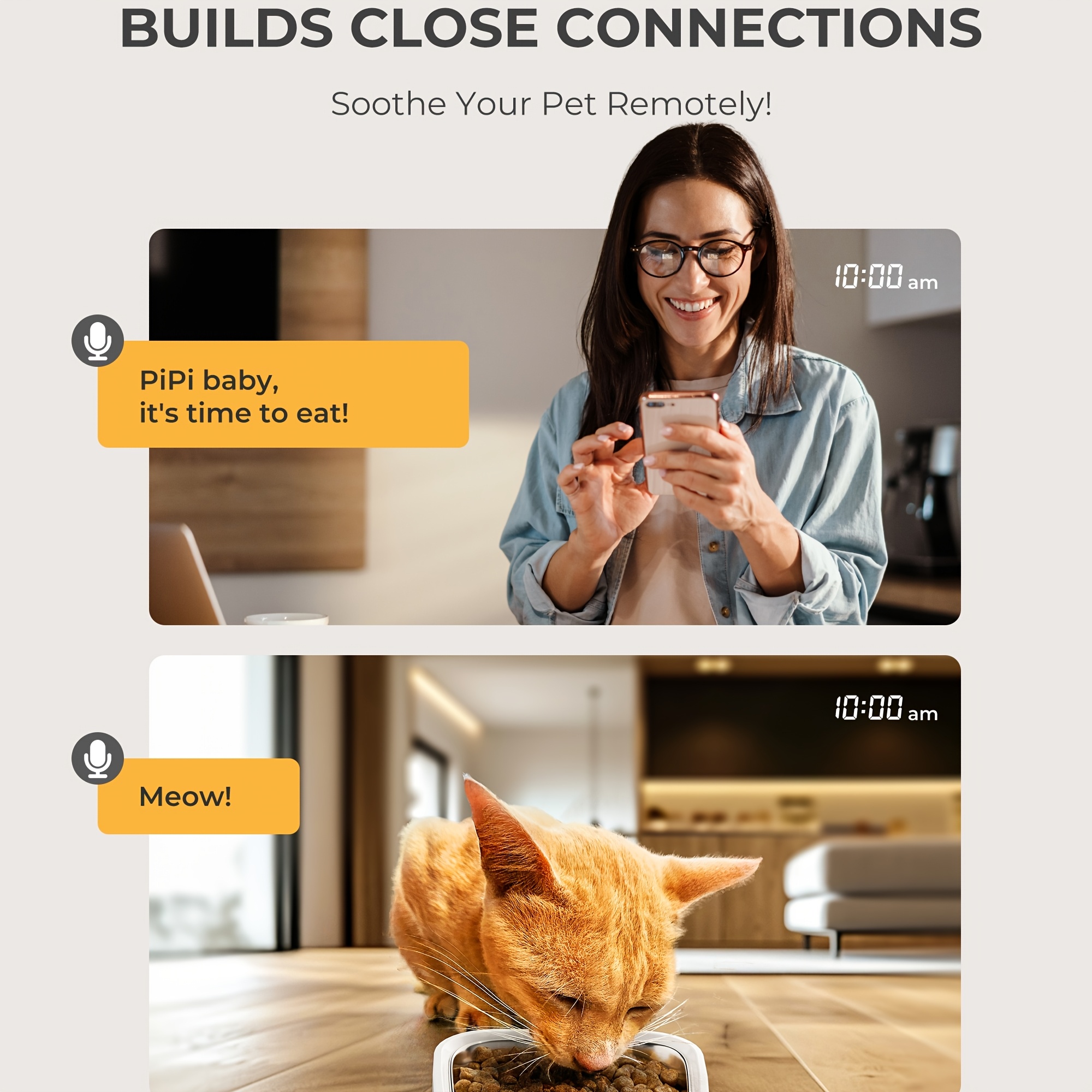 1.59gal Automatic Cat and Dog Feeder with Camera | Large Capacity, Adjustable Camera, HD Night Vision, Two-way Audio, Remote APP Control, Dual Power, Easy-to-Clean Stainless Steel Bowl, Wi-Fi Function, Without Battery