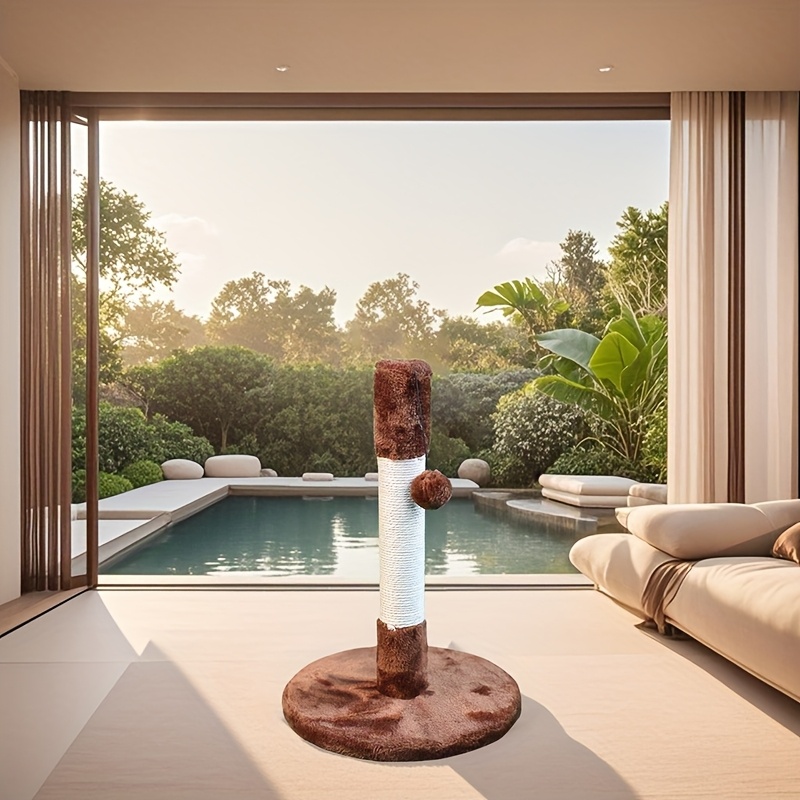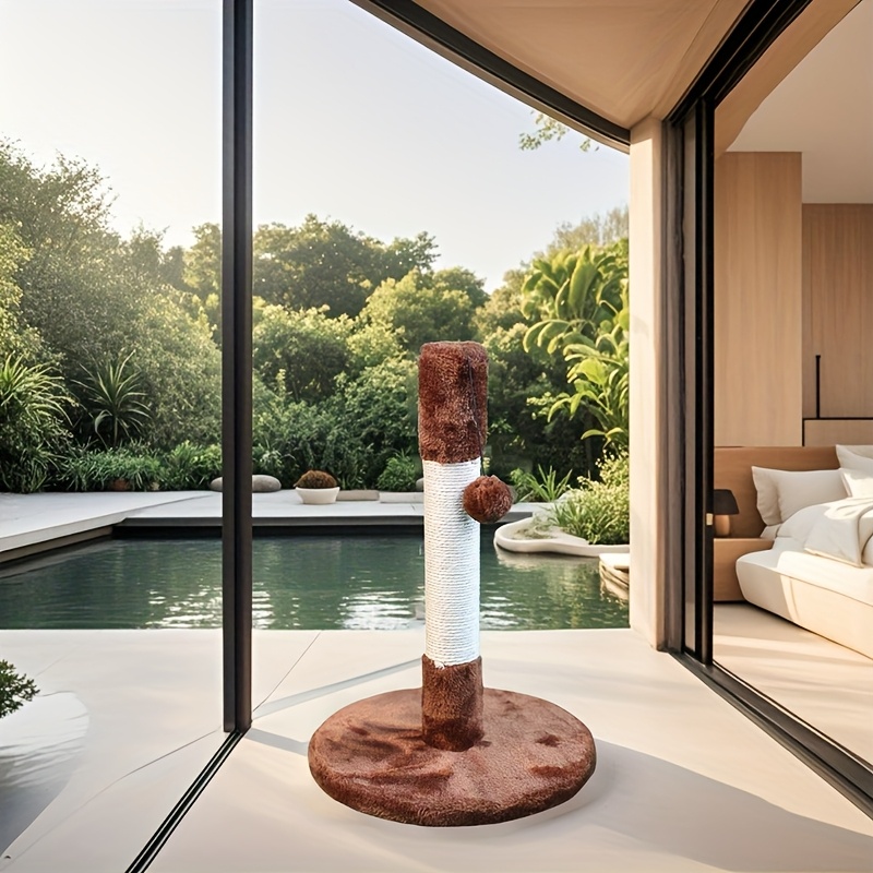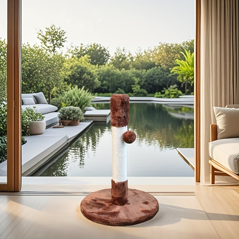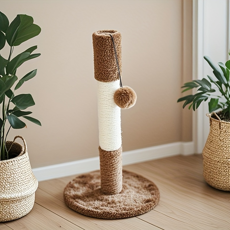 1pc 13.3 Inch Cat Scratch Post Durable White Sisal Rope Cat Scratch Post Play Tower With Wooden Base For Cat Grinding Paws, Play Hanging Toys Included
