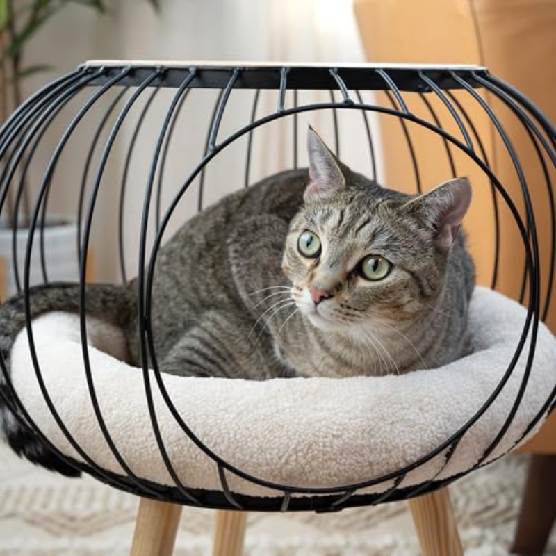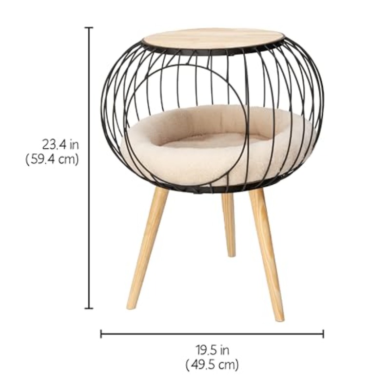 Kitty City Modern Cat Bed with Matching Wooden Table - Sherpa-Padded Cozy Cat Furniture, Durable Rubberwood Frame & Compact Design for Cats, Stylish Bed for Décor, Suitable for all Rooms (, Bedroom)